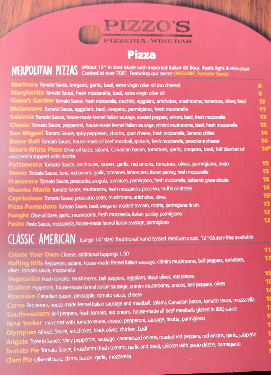 Welcome to Pizzo's Pizzeria and Wine Bar, a hidden gem nestled in Chula Vista, CA. This delightful eatery offers a mouthwatering menu that caters to all pizza lovers and food enthusiasts alike.